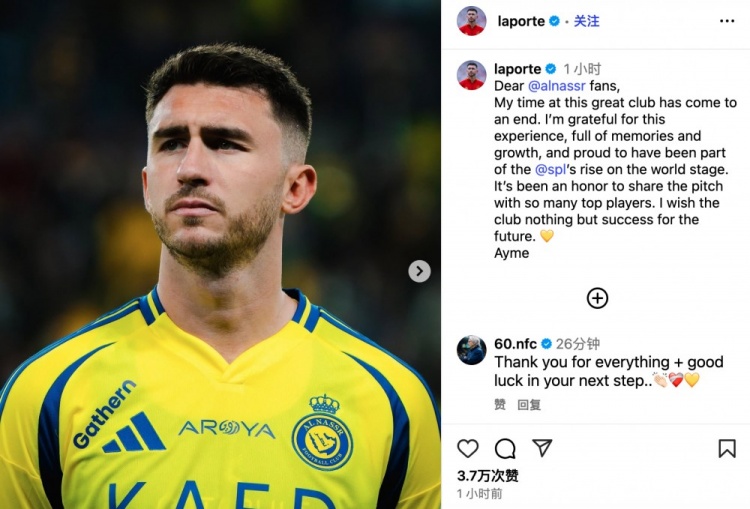9月12日讯 西班牙中卫拉波尔特即将回归毕尔巴鄂竞技,他在个人INS上发文,告别利雅得胜利,拉波尔特写道: